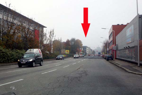 Sie fahren 300 / 350 Meter stadteinwärts bis zur nächsten Kreuzung.